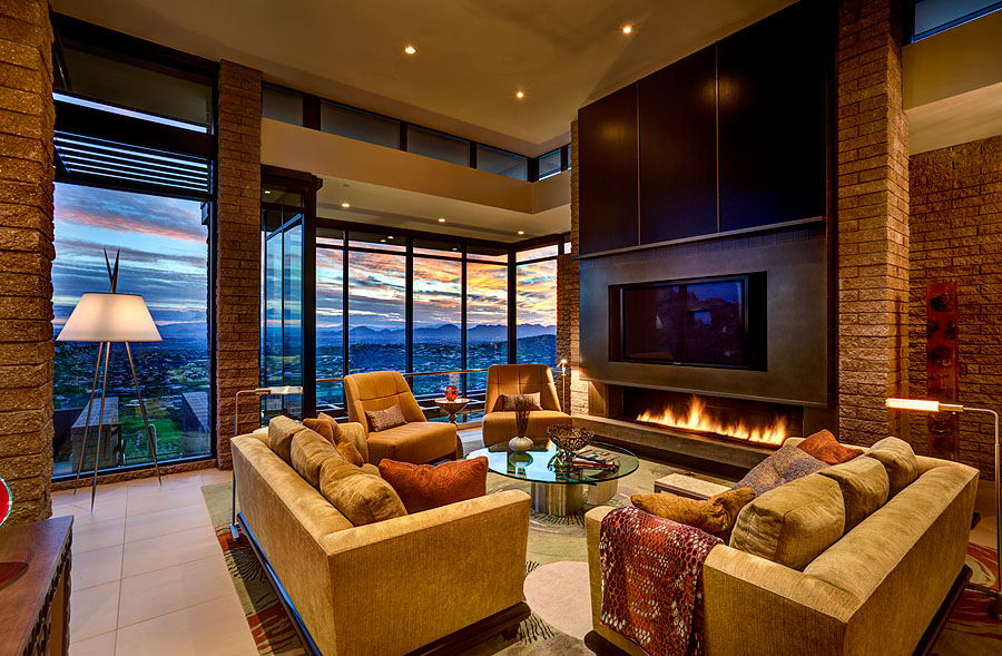 Nestled at the peak of a mountaintop, the design uses the natural rock outcroppings to zone the residence from public to private. A void is formed in plan, as the mountaintop becomes the complementing solid. The multi-level home organically forms into the mountain, erasing the distinctions between what is a synthetic wall or a naturally occurring rock formation. Horizontal lines create an architecture that complements the mountain and tries not to take away from the grandeur of the site. The site specific planning hides even its modest size.