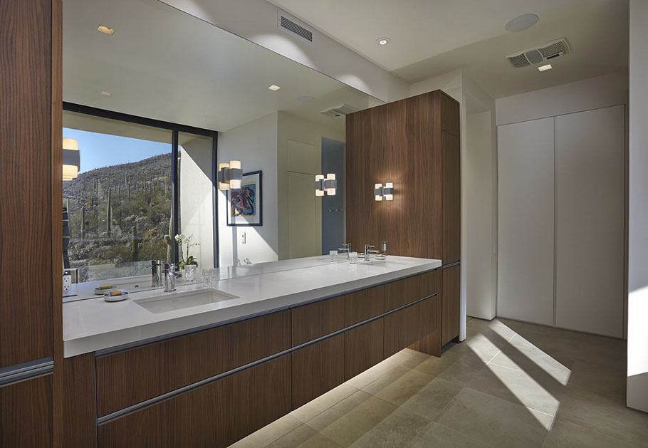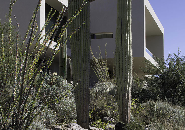 KBHA was very fortunate when a client who understood the basic concept of contrast, was asked to design a home in the foothills of Tucson Arizona. The owner wanted a “modern, minimal home: a box that seemed to have landed in the desert”. The owner’s program required vast views, but also contradicted its self by requiring no sunlight to harm their valuable art collection. A lover of minimalism and abstract paintings, with a vast eclectic collection, the architecture would be akin to living in a museum.