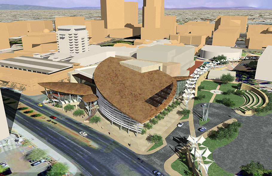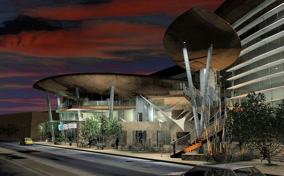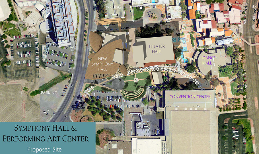 In 2010, Kevin B Howard Architects was presented with a problem, how to improve the existing Tucson Symphony Hall and Preforming Arts district. The existing Down Town Preforming Arts area was designed in the early 1970’s and has had many attempts over the years to provide a new life to the empty urban core. After attempts to master plan the surrounding areas as part of Rio Nuevo, the TSO took it upon themselves to be a driving energy for Tucson Downtown Revitalization.
