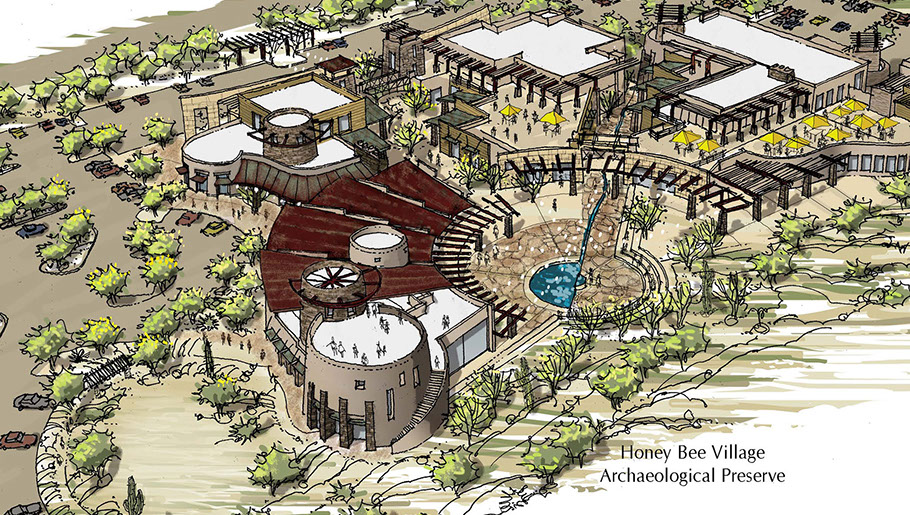 The Vistoso Village is focused around the formation of the “Honey Bee Village Preserve”. A Museum will be provided to store the ongoing archaeological studies of the site. Honey Bee Village is expected to become the prime historical site of Oro Valley attracting visitors from all areas. The Plaza will provide residents exciting dining, personal services and retail opportunities just steps from their homes. Residents will also enjoy the experience of living in a unique archaeological and cultural setting in which modern day life is intermingled with the historic past.